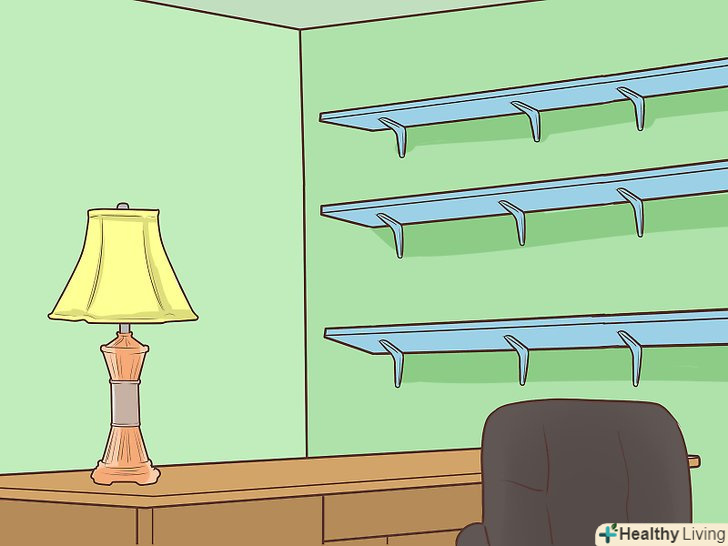 Додайте освітлення. вам буде потрібно як мінімум настільна лампа. Вона відмінно підходить для невеликих проектів, при яких потрібне додаткове освітлення. Слід вибрати регульовану лампу, яку можна присунути або відсунути від робочого місця. У великому приміщенні потрібно не менше двох ламп. [5]- Світильники можна придбати в меблевому або будівельному магазині.