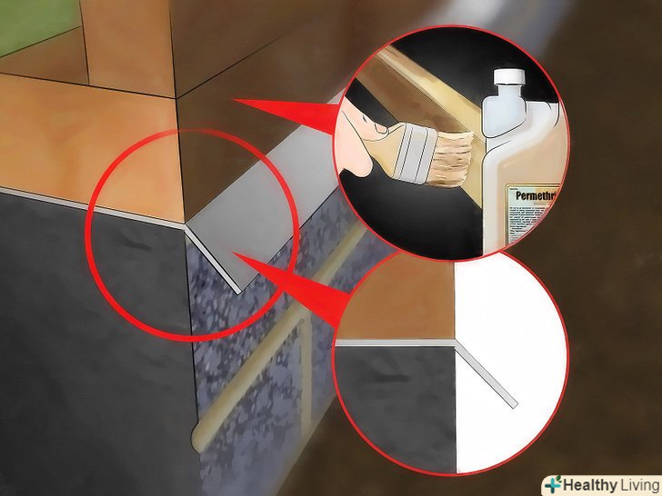 Усуньте точки проникнення, заклавши всі тріщини в будинку. коли ви визначите, де, на вашу думку, терміти проникають в будинок, вам варто обов'язково закрити всі отвори і обробити ділянку засобом від термітів, щоб запобігти подальшому зараженню. [17]- Помістіть отруту біля точок входу, щоб убити термітів ще до того, як ті почнуть будувати нові тунелі.