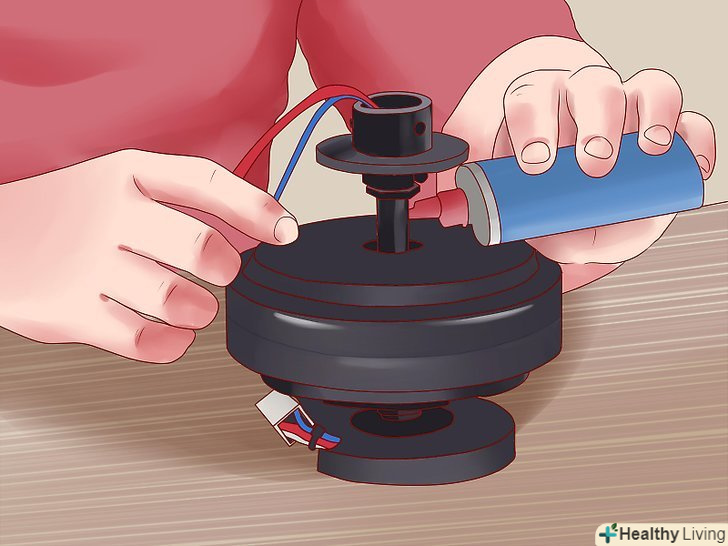 Переверніть мотор. такою ж кількістю змастіть нижній підшипник (де кріпляться лопаті). Покрутіть нижню частину мотора, щоб мастило розподілилася по підшипнику.