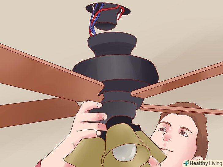Підключіть мотор до стелі, починаючи з електропроводки, і закінчуючи гвинтами.