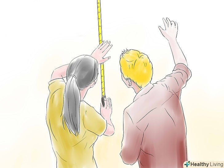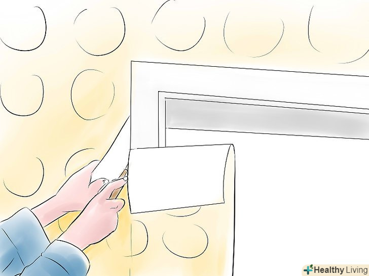 Ретельно проміряйте всі стіни. до цього ви вимірювали приблизно, щоб знати кількість потрібного матеріалу. Тепер же потрібно розмітити стіни, щоб можна було нарізати шпалери.- Озбройтеся олівцем і робіть позначки прямо на стіні. Так ви наочно будете бачити, скільки смуг потрібно, а також шматки яких розмірів потрібні будуть на вставки.