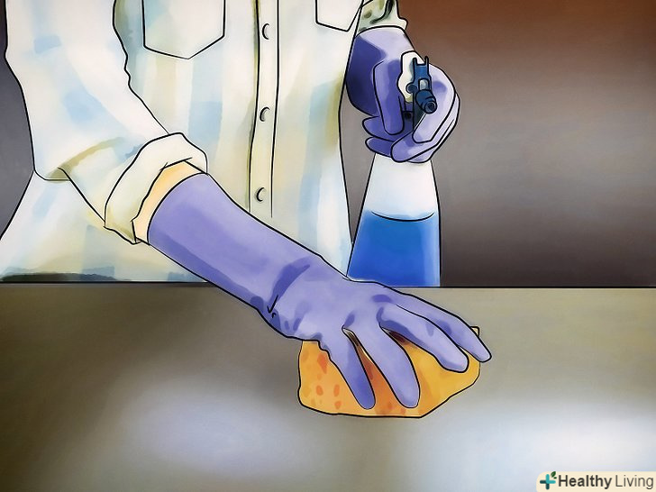 Одягайте захисний одяг, коли чистите скловолокно. Скловолокно може викликати подразнення шкіри. При тривалому контакті на шкірі може навіть з'явитися висип. При поводженні зі скловолокном обов'язково надягайте одяг з довгими рукавами, а після закінчення роботи переодягайтеся в чистий одяг. Довгі рукави захистять шкіру рук, а зміна одягу необхідна для того, щоб скловолоконний пил не потрапила на вашу шкіру після роботи. [10]- Зведіть до мінімум можливий контакт голої шкіри зі скловолокном. При роботі зі скловолокном необхідні рукавички, одяг з довгими рукавами і штани.