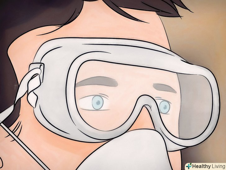 Надягайте захисні окуляри при роботі зі скловолокном. Скловолокно може викликати роздратування і пошкодження очей. Подразнення очей серйозніше, ніж подразнення дихальних шляхів, так як воно може привести до постійних пошкоджень.- Частинки скловолокна можуть потрапляти в очі і дратувати їх. Захисні окуляри зведуть до мінімуму контакт зі скловолокном і допоможуть запобігти подразнення очей.