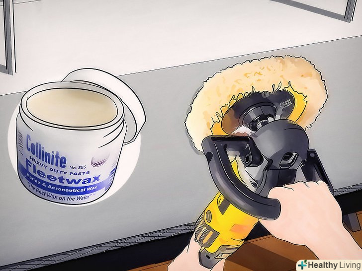 Спробуйте очистити корпус човна зі скловолокна за допомогою воску, силікону або миючого засобу (однак врахуйте, що силікон сильно ускладнить подальший ремонт). Якщо у вас є човен зі скловолокна, напевно вам хочеться, щоб її корпус сяяв. Перераховані чистячі засоби можна придбати в магазині товарів для риболовлі та туризму — попросіть продавця порекомендувати кращий варіант саме для вашого човна.- Хороший поліроль для човнів створює захисний шар на покритій гелем поверхні скловолокна, який захищає корпус від впливу навколишнього середовища. З його допомогою ви захистите корпус човна від води і додасте йому гарний вигляд.