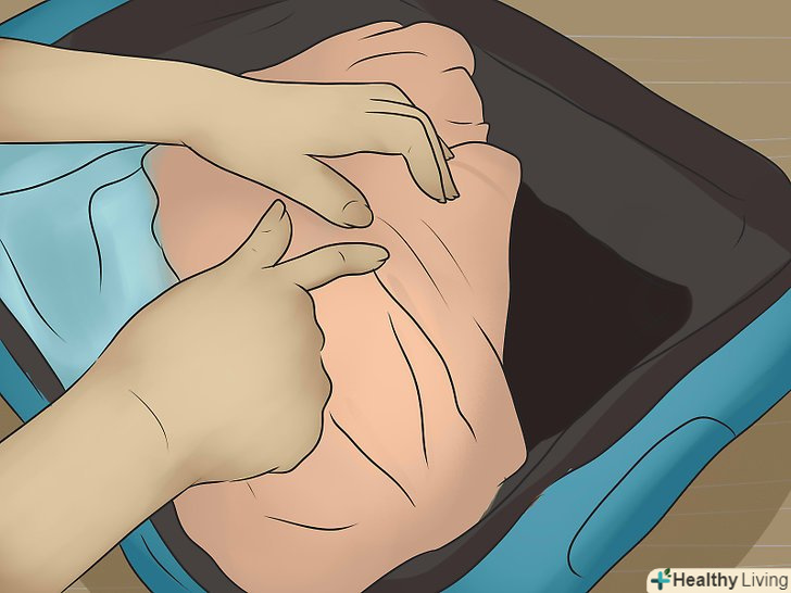Спробуйте упаковку в вузли. якщо хочете упакувати більше речей або хочете додатково перестрахуватися від пом'ятостей, пакуйте великі вузли. [3] почніть з укладання ваших блейзерів і сорочок один на одного на 180 градусів. Складіть рукава починаючи від верху плечей, так, щоб вони схрестилися один з одним. Чергуйте шар за шаром, рухаючись від сорочок до майок і, врешті-решт, до штанів, які потім потрібно розмістити перпендикулярно іншим речам, обертаючи ними сорочки. Нарешті, складіть піжаму в квадрат і помістіть її в центрі. Тепер, обв'яжіть кожен предмет навколо цього центрального пучка окремо, потягнувши по черзі за лівий і правий рукав, потім вгорі і внизу. Розгладжуйте тканину при обертанні поки весь вузол не буде готовий. Просто помістіть його в свій чемодан, і ви готові.- Однак, майте на увазі, що цей метод не дуже бажаний при огляді сумок системою TSA. Не використовуйте його, якщо знаєте, що у вас не буде запасу часу в аеропорту, оскільки вам доведеться в поспіху знову згортати ваш вузол.