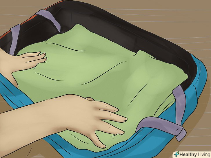 Збирайте тільки найбільш корисні речі. постарайтеся, наскільки це можливо, запастися речами багатоцільового призначення. Дотримуйтеся колірної гами, вибираючи одяг, і спробуйте взяти по три предмети одягу для верхньої частини тіла на одну пару для низу. Ніхто не помітить, що на вас одні і ті ж джинси, і ви можете отримати абсолютно різні образи, творчо поєднуючи елементи. [1]- Наприклад, для тижневої поїздки, ви можете упакувати одну пару штанів, три футболки, дві майки, дві сорочки, светр з вирізом, і пару піжамних штанів. Светр може використовуватися в парі не тільки з сорочками для стильності і футболками для утеплення. Він також може працювати в парі з майками в якості повсякденного предмета верхнього одягу. Всі сорочки можна використовувати як верх піжами після того, як вони зносяться. Одягаючи одні штани в літак і взявши з собою інші, Ви отримуєте досить пристойну кількість одягу для вашої поїздки.