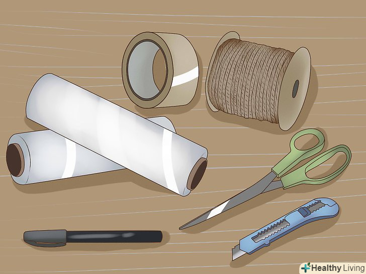 Обзаведіться деякими пристосуваннями. Вам не завадить орендувати кілька речей з місцевого магазину або транспортної компанії, для того, щоб спростити процес і зробити його не таким затратним. В основному вам знадобляться носилки і, можливо, візок. Це допоможе вам перевезти дуже важкі предмети і взяти більше ніж одну річ за один раз, прискорюючи тим самим процес і полегшуючи його для вас.- Вам, звичайно, знадобиться дещо ще. Стрічка, термоусадочна плівка, ручки для маркування, ножиці, коробкові Різаки, шпагат і шнури дуже корисні для упаковки і перевезень.