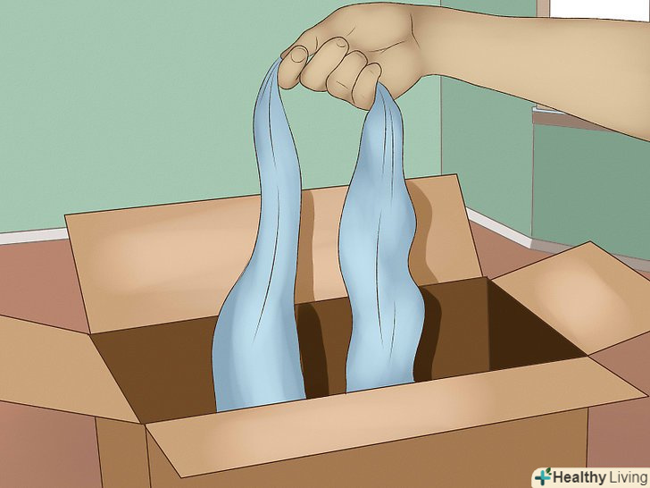 - Обзаведіться новими коробками. Старі коробки не завжди достатньо міцні, щоб витримати важкі предмети. Якщо ви хочете використовувати повторно коробки, переконайтеся, що вони годяться для переїзду, знаходяться в хорошому стані, і ними користувалися останнім часом. Якщо ви не впевнені в цьому, то використовуйте старі коробки тільки для небитких речей на зразок м'яких іграшок, одягу і т. д.