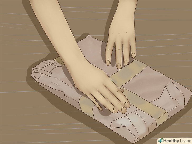 Спробуйте згорнути ваш одяг. є багато різних думок про кращий варіант упаковки одягу. Правда, все залежить від того, що саме ви пакуєте, скільки ви берете, і наскільки добре ви це пакуєте. Хороший варіант-згорнути свій одяг. Це займає менше місця, ніж укладання складеного одягу і може фактично запобігти складки, якщо ви зробите хороший, щільний рулон. Проте цей метод працює, тільки якщо ви плануєте брати дуже повну сумку.- Коли ви згортаєте речі, не забудьте, що якнайкраще ущільнювати їх і розгладжувати прим'яті ділянки. Це дозволить запобігти великі складки від вигинів.