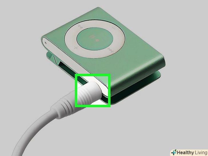 Підключіть вільний кінець зарядного кабелю до iPod shuffle.Підключіть кабель до роз'єму для підключення навушників у нижній частині iPod shuffle. Пристрій почне заряджатися.
