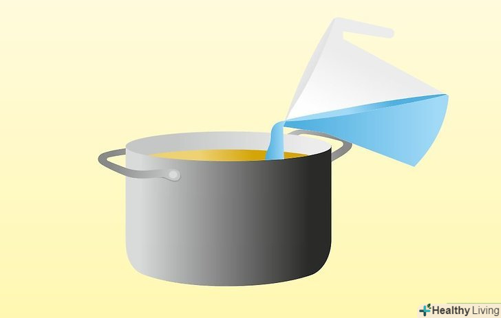 Повільно наливайте лужну воду в каструлю, перемішуючи її з маслами.