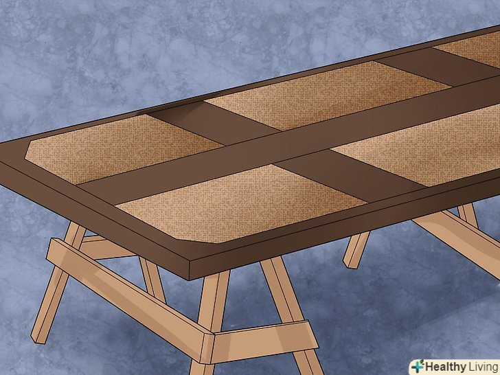 Покладіть двері рівно на кілька козлів (для пилки дров). як правило, краще поставити козел в добре провітрюваному приміщенні якомога рівніше і переважно на рівні талії, перш ніж фарбувати їх. Установка дверей на верстаті було б прекрасним рішенням, але її розташування на декількох козлах буде ще більш зручним, якщо у вас є доступ до них.