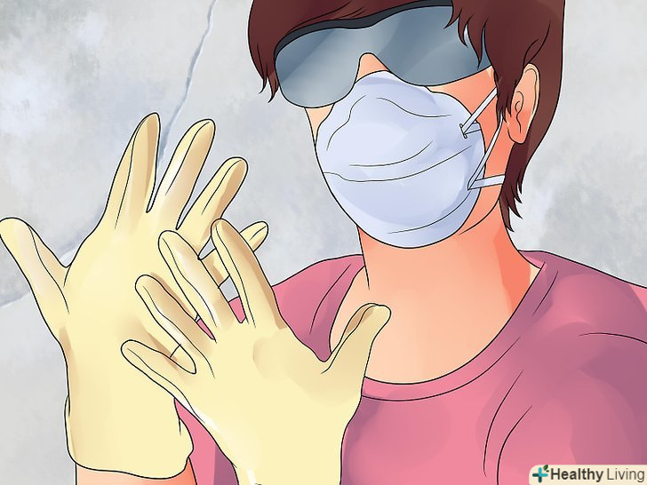 Носіть захисні окуляри та рукавички. коли ви працюєте з фарбою і шліфувальною машинкою, важливо носити захисний одяг, рукавички, окуляри, і респіратор, якщо ви знаходитесь в приміщенні. Уникайте попадання фарби для дерева на ваше обличчя або шкіру.- Якщо ви робите все в гаражі, також важливо носити захист для органів дихання і провітрювати приміщення якомога частіше. Робіть часті перерви і переконайтеся, що Ви отримуєте достатньо чисте повітря для дихання. Негайно зупиніться, якщо починаєте відчувати запаморочення.