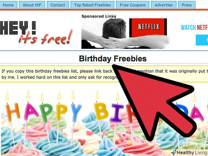 Шукайте пропозиції-бонуси з нагоди Дня народження.багато ресторанів та інших закладів пропонують своїм відвідувачам безкоштовні бонуси з нагоди їх Дня народження. Швидше за все, вам потрібно буде самому оплатити рахунок, але, погодьтеся, безкоштовна випивка, безкоштовний десерт або інший бонус стануть приємним сюрпризом у ВАШ день.