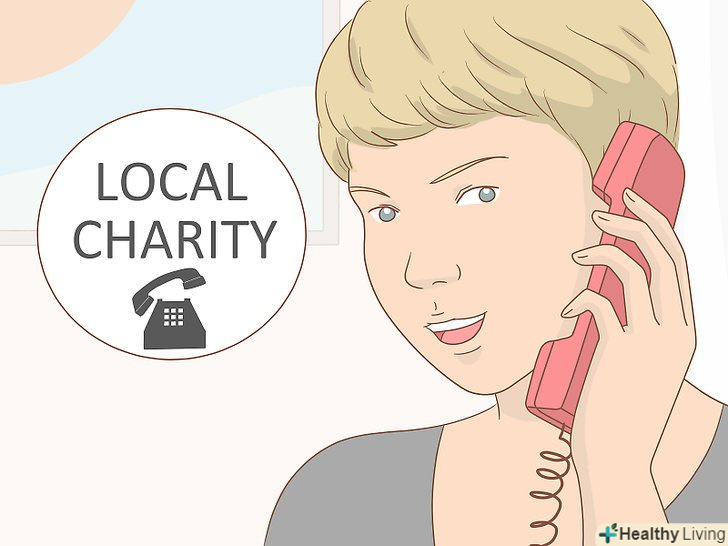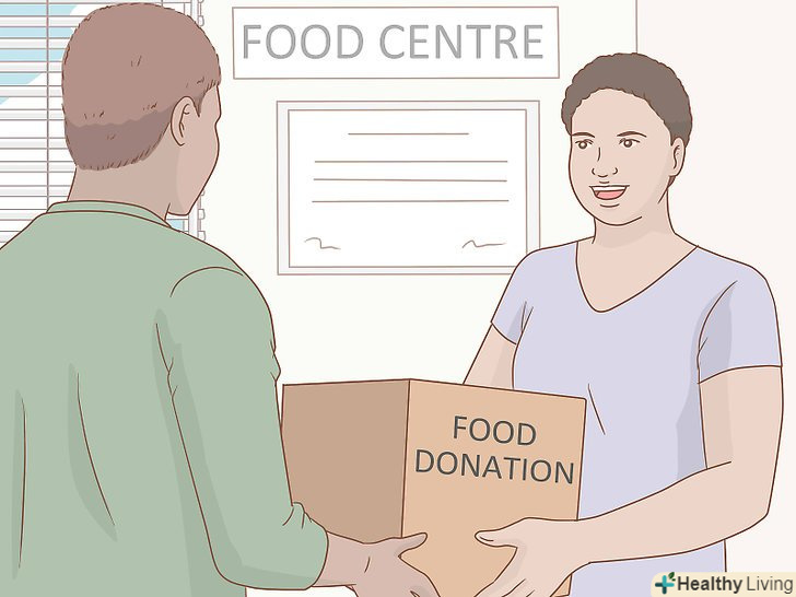 Зверніться до місцевих благодійних організацій. після сортування зайвих продуктів знайдіть відповідні організації. Дізнайтеся контактні дані продовольчого фонду або кухні для бездомних і уточніть, як можна передати продукти. Список подібних організацій завжди можна знайти в Інтернеті. [5]- Існують навіть спеціальні програми для смартфонів, які дозволяють організаціям жертвувати непотрібні продукти харчування. [6]