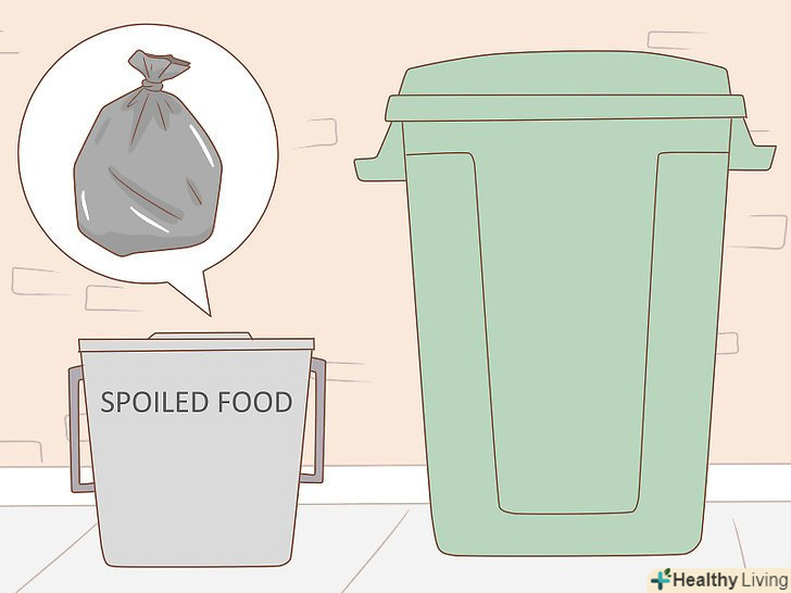 Сортуйте зіпсовані продукти. у випадку зі швидкопсувними продуктами не можна зволікати. Не складайте такі відходи в звичайне сміття, зберігайте їх в міцних поліетиленових пакетах і регулярно викидайте. [10] спробуйте викидати зникле м'ясо та інші продукти гниття в сміття в день вивезення. Гниючі відходи залучають паразитів і комах.- Щільно зав'язуйте поліетиленові пакети з м'ясом та іншими сирими відходами, після чого викидайте в сміттєвий пакет. Це дозволить мінімізувати запахи і протікання.