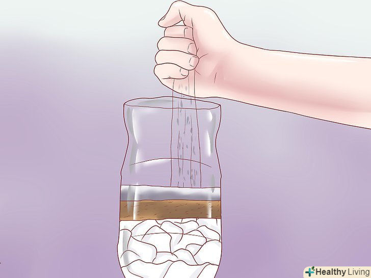 Помістіть пісок або подрібнене вугілля в контейнер, поки він не буде заповнений наполовину. накрийте пісок / вугілля іншим шматком вати або кавовим фільтром у верхній частині цього шару, щоб він не сильно витіснявся водою.