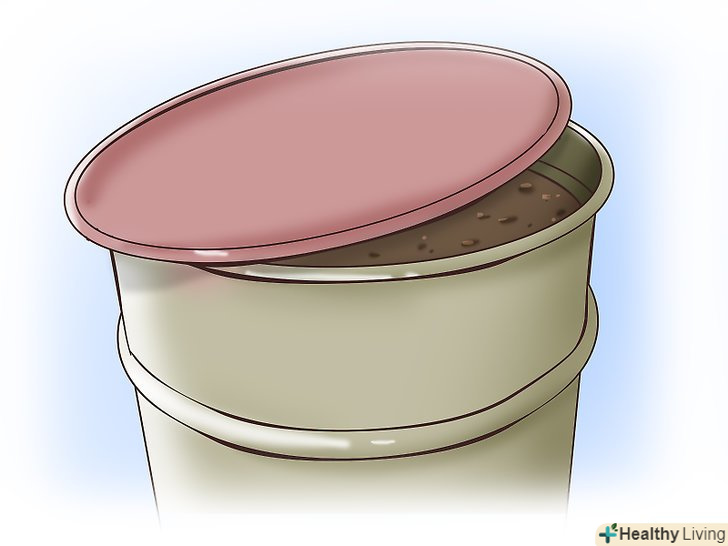 Поставте контейнер подалі. Запах буде неприємний, тому поставте контейнер в безпечне місце, на задній двір або за сарай. Простежте, щоб у дітей і домашніх тварин не було до нього доступу. Розкажіть членам сім'ї про те, що ви робите добриво і який контейнер використовуєте, щоб вони не натрапили на нього випадково і не взяли ємність в руки помилково!