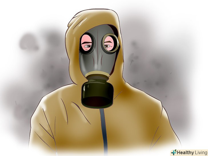 Будьте підготовлені. носіть одяг, який покриває все ваше тіло, не забуваючи затягнути манжети якомога щільніше. Протигази досить ефективні, як засіб захисту від СББ, але тільки якщо вони функціонують належним чином. Протигази б / у, куплені в інтернет-магазині або на складі військової амуніції, можуть бути в несправності. До того ж, за чутками, старі протигази мали азбестові фільтри. ** Це поширене судження є необгрунтованим. Однак старі каністри американського виробництва володіли хромової токсичністю. Також численні претензії пред'являються і до» терміну придатності " протигазів. Активоване вугілля, яке є фільтруючим елементом, ефективний проти ХН / ХЗ газу, і має необмежений термін зберігання. ** Якщо у вас немає протигазу, ви можете використовувати респіратор, що покриває ніс і рот. Переконайтеся, що ви використовуєте фільтри, придатні для використання з розчинниками для фарб та іншими токсичними газами. Також змочіть хустку або будь-який інший шматочок тканини в яблучному оцті або лимонному соку і щільно прикривайте їм рот і ніс. Принесіть герметичні захисні окуляри для захисту очей. Плавальні окуляри чудово підійдуть, але тільки якщо у них є хороше ущільнення. Якщо це можливо, не варто надягати контактні лінзи. Підготуйте і візьміть з собою розчин води і харчової соди (розчин повинен містити близько 5% харчової соди) для нейтралізації впливу хімічних речовин на шкіру. Намагайтеся не використовувати креми на масляній основі або сонцезахисні засоби, так як вони сприяють всмоктуванню СББ.