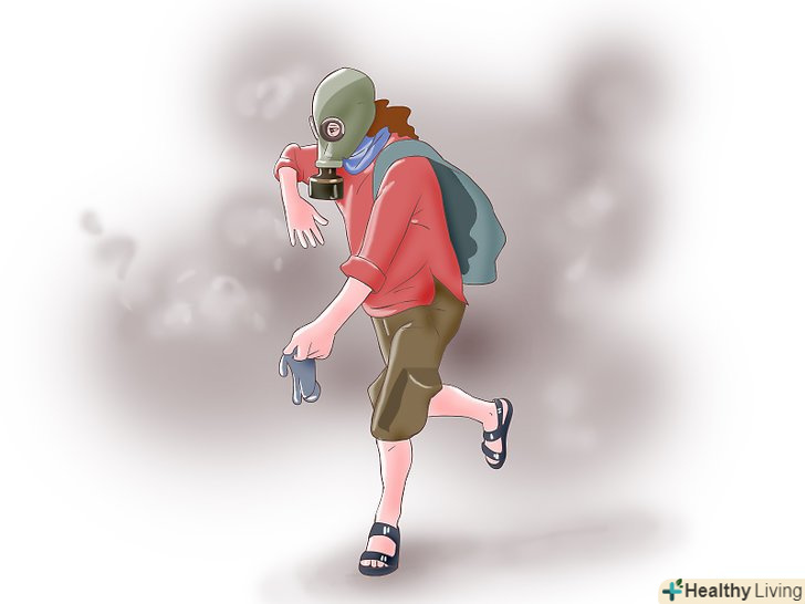 - Увійдіть всередину, якщо це можливо. Хоча це і є практично неможливим за даних обставин, але можна забратися всередину щодо герметичного будинку, якщо викид газу стався на вулиці. Переконайтеся, що вікна та двері закриті, і підніміться на найвищий поверх. Знайте, однак, що якщо газ вже проник в будівлю через відкрите вікно або систему вентиляції, то вам потрібно буде покинути будівлю і вийти на свіже повітря. Свіже повітря, особливо якщо присутній вітер, краще закритого повітря в приміщенні, особливо якщо ви вже зазнали впливу СББ.