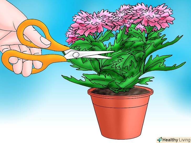 Після цвітіння знову обріжте хризантеми. коли цвітіння закінчиться, відріжте хризантему назад, близько 8 дюймів (20 см) від землі. Це допоможе рослині зберегти більше енергії протягом зими.