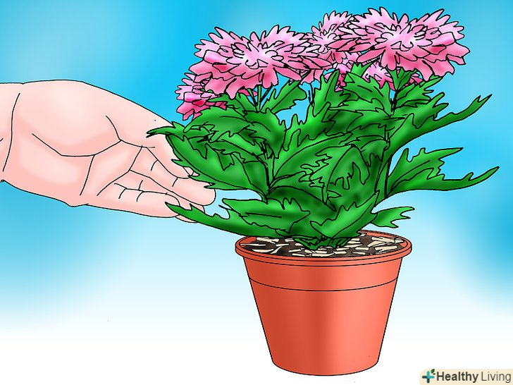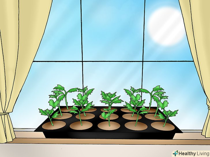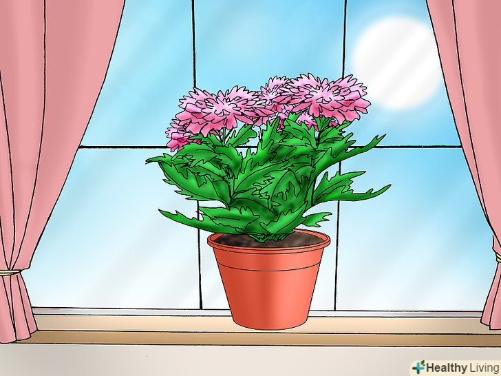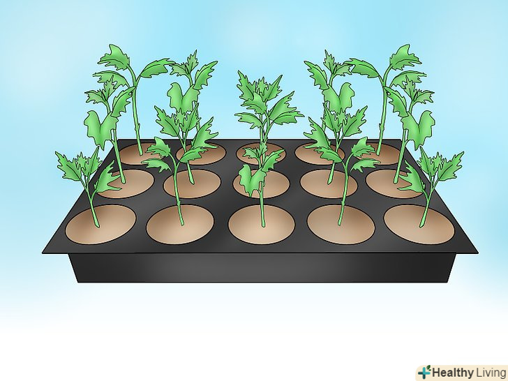 Тримайте паростки в прохолодному, добре освітленому місці, поки вони не укореняться. Тримайте паростки хризантеми в добре освітленому місці, захищеному від прямих сонячних променів. Підвіконня, який не отримує дуже багато сонячного світла підходить ідеально. Температура повинна бути досить прохолодною, але вище нуля.- Паростки повинні пустити коріння протягом 4 тижнів. Коли ви побачите, що під рослинами з'являються коріння, пересадите їх в окремі горщики.