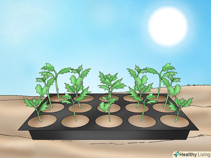 Перед висадкою на вулиці дайте паросткам зміцниться. якщо паростки, вирощені в закритому приміщенні або під склом, їм знадобиться деякий час, щоб пристосуватися до життя на відкритому повітрі, «загартовуючись». Це дозволяє їм акліматизуватися до рухомого повітря, змінної вологості і температурі зовні, тому вони не будуть «шоковані» настільки, щоб їх розвиток сильно постраждало.- Щоб зміцніти перенесіть рослини, посаджені у вашому будинку, в більш прохолодний простір, наприклад, в неопалювану теплицю. Ви можете залишити ваші рослини на вулиці протягом дня, але занесіть їх на ніч.