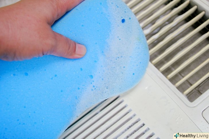 Намочіть губку. потім протріть губкою пожовклі області техніки.