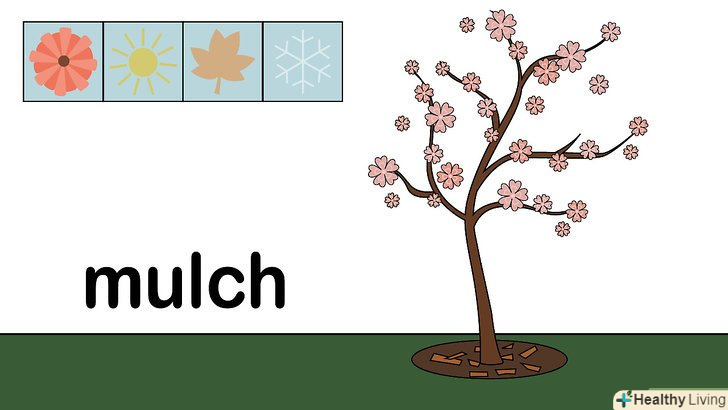 Навесні вносите компост і мульчу. для здорового росту дерева щовесни слід додавати шар компосту. Розподіліть його по контуру поливу або по ділянці під нижніми гілками дерева. Потім додайте 5 сантиметрів мульчі, щоб грунт краще утримувала вологу і в ній не росли бур'яни. [16]- Мульча не повинна доходити до стовбура дерева на 8-10 сантиметрів, щоб коріння не відволожилися.