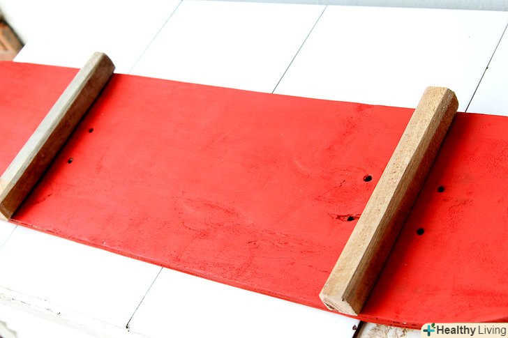 Відріжте два дерев'яних бруска, які були б в довжину рівні ширині дошки. це будуть ручки.
