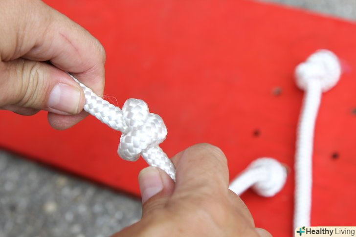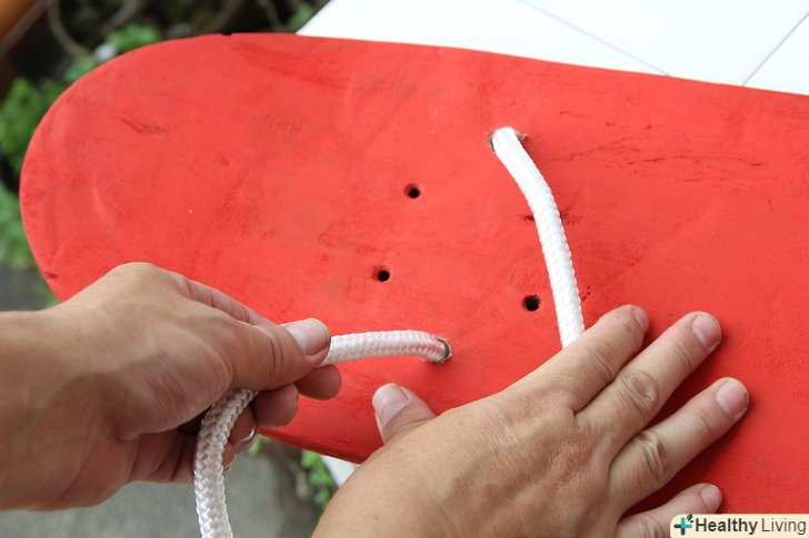 На кожній мотузці зав'яжіть надійний вузол, щоб зафіксувати дошку.