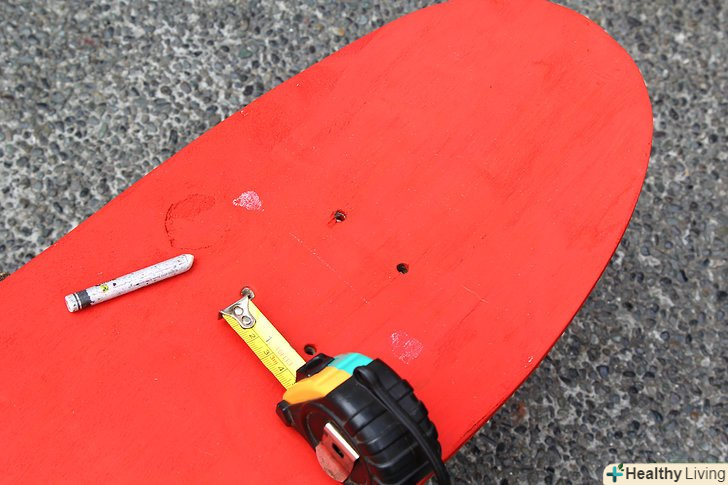 Орієнтуючись на чотири отвори, за допомогою яких кріпилися колеса, відзначте, де ви збираєтеся просвердлити отвори під мотузки.