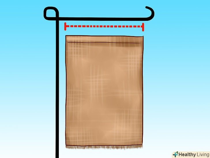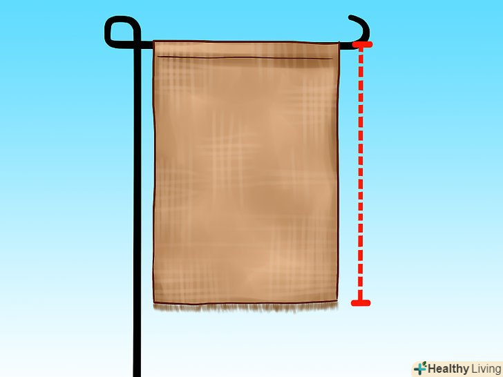 Визначтеся з вертикальною довжиною прапора. звичайна висота флагштока 45 см. додайте 10 см для завороту і того вийде 55 см.- Якщо під флагштоком у вас знаходяться високі рослини, то зробіть прапор коротше, щоб його було видно над рослинами. Головне, щоб матеріал не торкався землі, інакше він намокне і забрудниться.