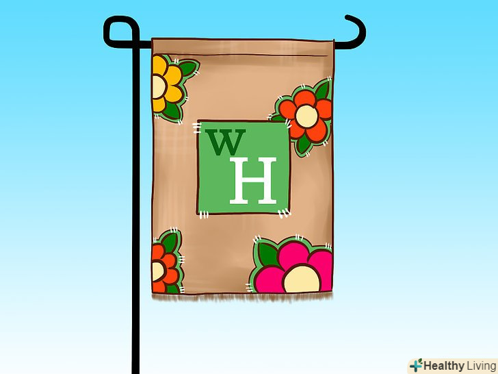 Щоб зробити садовий прапор, вам знадобиться шматок міцного матеріалу на зразок полотна або брезенту. Якщо ви бажаєте максимально спростити завдання, то можна просто приклеїти прапор клеєм для тканини, хоча пришити його вручну або на машинці не набагато складніше. Спорудивши свій прапор, ви можете змінити або прикрасити його як забажаєте, надавши саду індивідуальності.