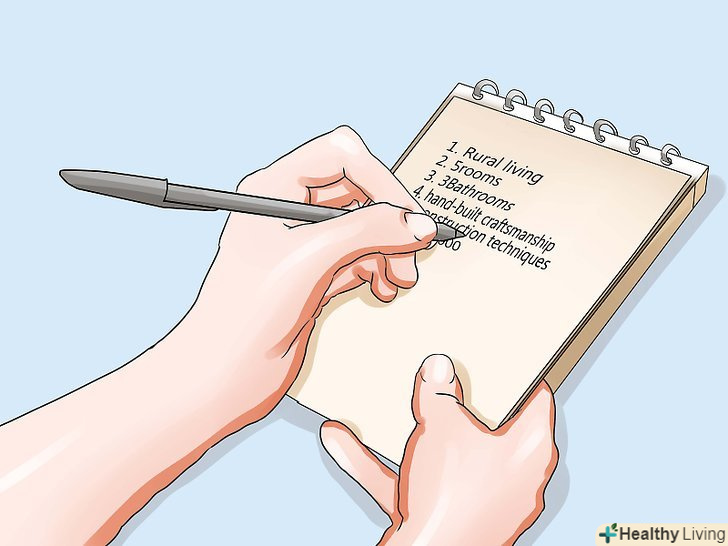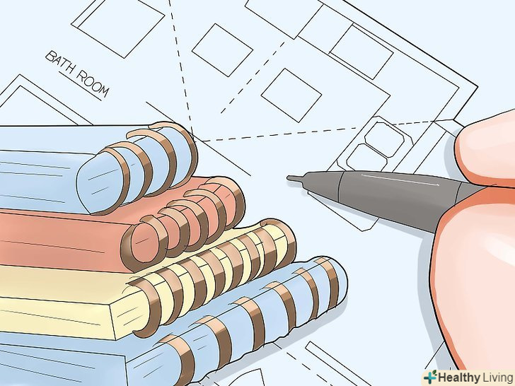 Будьте організовані. мрії-це добре. Життєво важливо мати уявлення про те, чого ви збираєтеся досягти, але досягнення цього може стати набагато більш важким, якщо ви будете постійно шукати той обривок паперу, який, як ви думаєте, ви десь там залишили.- Заведіть міцну, в матер'яній палітурці, розграфлений зошит (часто називається «книга для обчислень»), і тримайте її при собі до тих пір, поки ваш будинок не буде закінчений. Ви можете стрічкою або клеєм закріпити там фотографії, лист посилань, постачальників, цифри і все що завгодно, пов'язане з проектом.