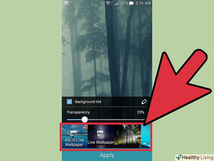 Визначитеся з типом шпалер.З'явиться список опцій, з якого можна вибрати малюнок робочого столу. Тут будуть включені: "Живі Шпалери "(Live Wallpapers),» Шпалери Блокування екрану «(Lock Screen Wallpapers),» стандартні шпалери " (Static Wallpapers) і т. д.