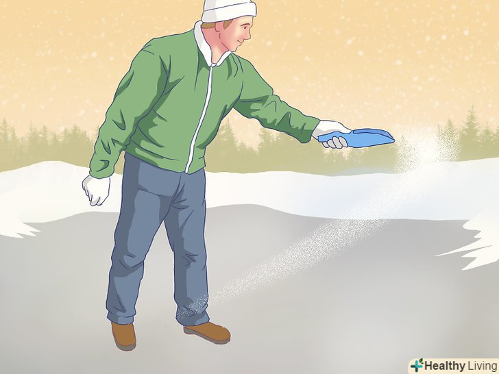 Регулярно зчищайте сніг лопатою. не чекайте закінчення снігопаду — чистіть сніг відразу, інакше сніг і лід влипнуть в тротуар, що ускладнить їх подальше видалення. Крім того, завжди можна запропонувати трохи підзаробити сусідській дитині і попросити його розчистити тротуар перед вашим будинком. [1]- Ключ до успіху криється в якнайшвидшому початку снігоприбиральних робіт.