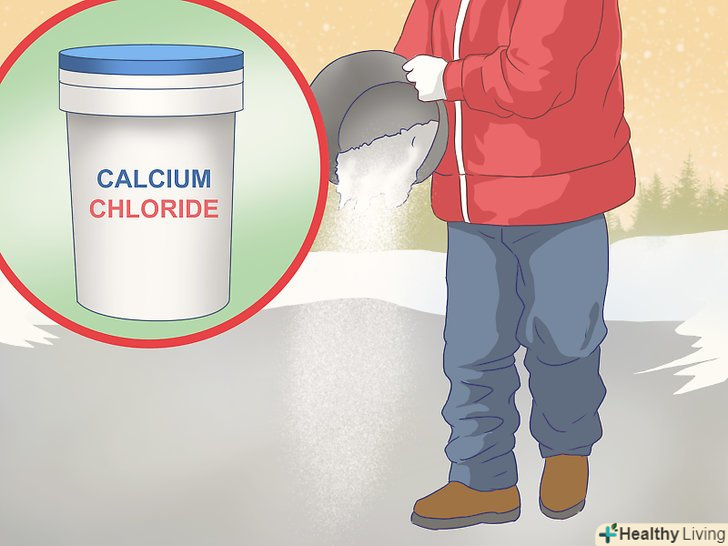Спробуйте використовувати хлорид кальцію. гранули хлориду кальцію топлять лід швидше кам'яної солі і володіють іншими перевагами в якості антиобледенителя. [10]- Хлорид кальцію діє при більш низьких температурах, ніж кам'яна сіль. Він зберігає ефективність при морозах до -30 °C.