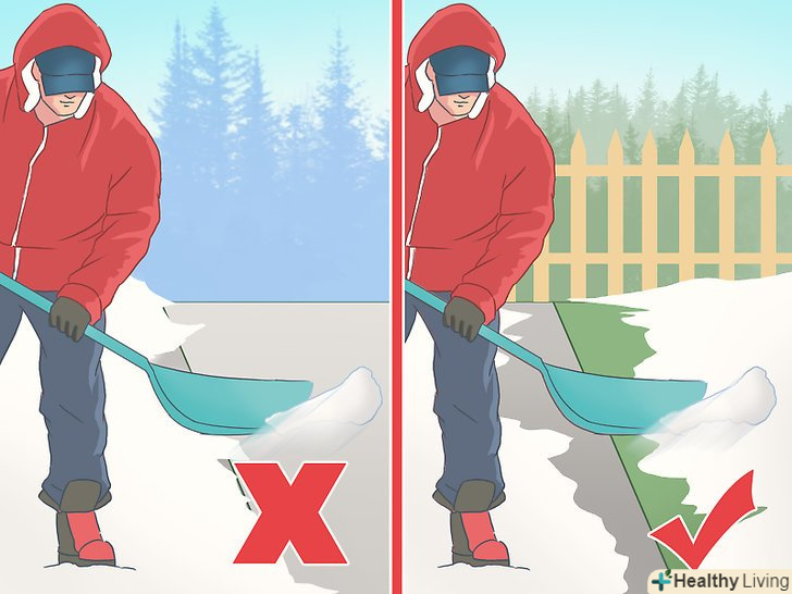 Обдумано підходьте до складування снігу. скидати сніг на дорогу або на сусідську територію — погана ідея. Ставтеся до оточуючих з повагою. Крім того, також слід простежити за тим, щоб складований сніг не заблокував водостоки.- Якщо ви будете скидати сніг на дорогу, то велика ймовірність викликати дорожній колапс для автомобілістів. А складування снігу зі своєї під'їзної доріжки до будинку на території громадського тротуару може порушити місцеві правила благоустрою.