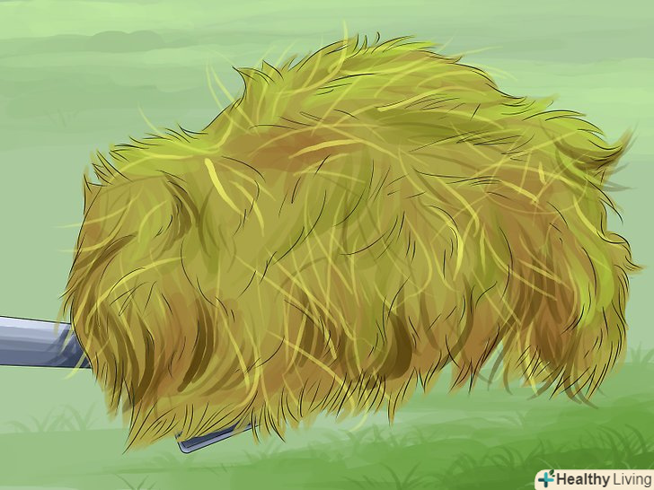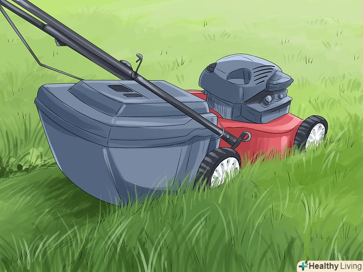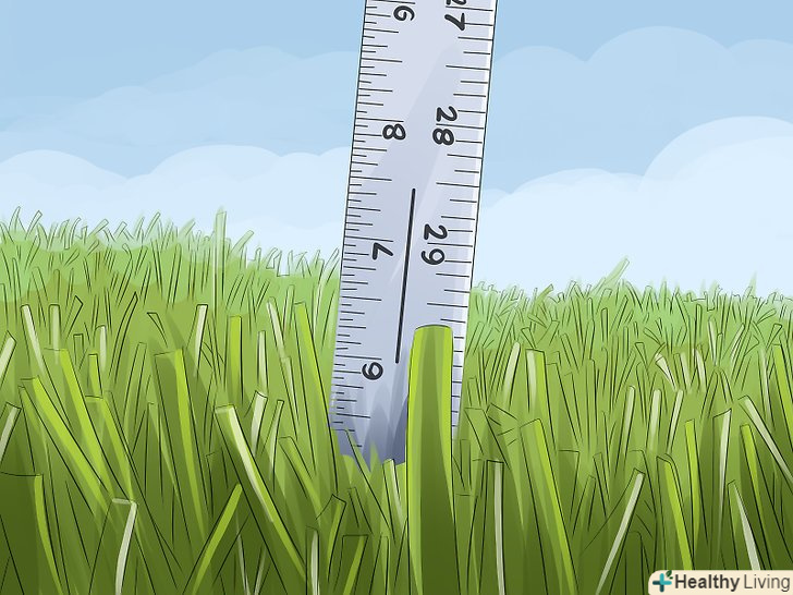 Знімайте не більше третини висоти трави. якщо зрізати більше третини від висоти трави на газоні, то можна сильно пошкодити покрив. Якщо ви пропустили час покосу і трава стали надмірно високою, то зріжте третину висоти дерну і повторіть через кілька днів. [14] в ідеальну весняну погоду швидкозростаючу траву доводиться косити кожні три-чотири дні.- Наприклад, якщо необхідна висота становить 5 сантиметрів, то не допускайте, щоб до покосу дерен виростав вище 7,5 сантиметрів. Якщо бажана висота 8 сантиметрів, то перед покосом дерен повинен бути не вище 12 сантиметрів.
