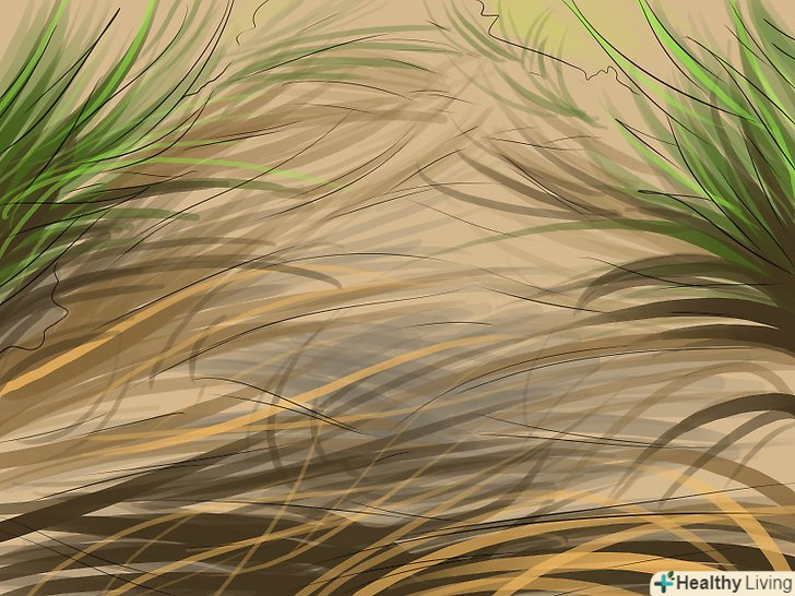 Ознаки висихання. Не чекайте, поки весь газон стане бурим. Якщо дерен прив'яв, змінив колір (придбав сірий, ліловий або синій відтінок), а сліди від ніг не зникають через годину, то галявину пора поливати. [6] насправді такий стан газону сприяє здоров'ю дерну в довгостроковій перспективі, але незабаром після цього галявину потрібно полити, щоб вона не стала бурою. [7]- Також можна копнути землю, щоб дізнатися глибину просихання. Не поливайте газон, якщо грунт ще не просох на глибину 5 сантиметрів. [8]