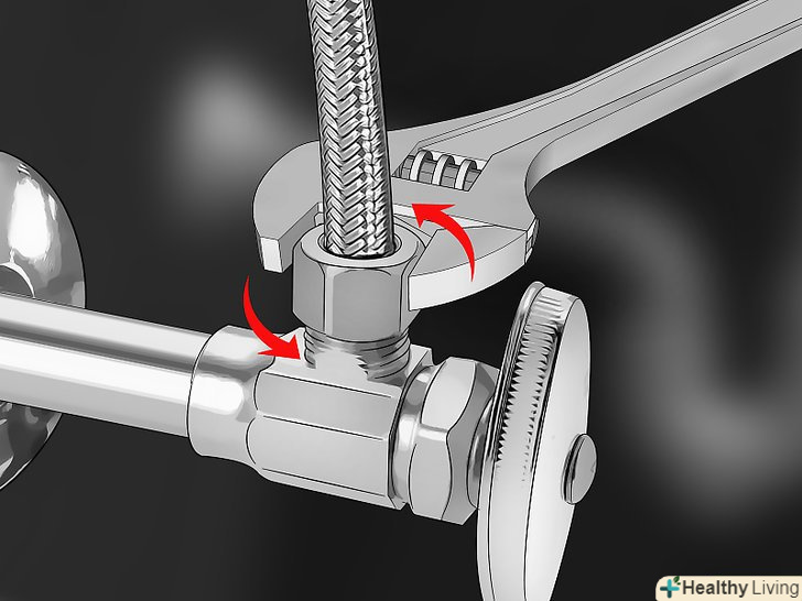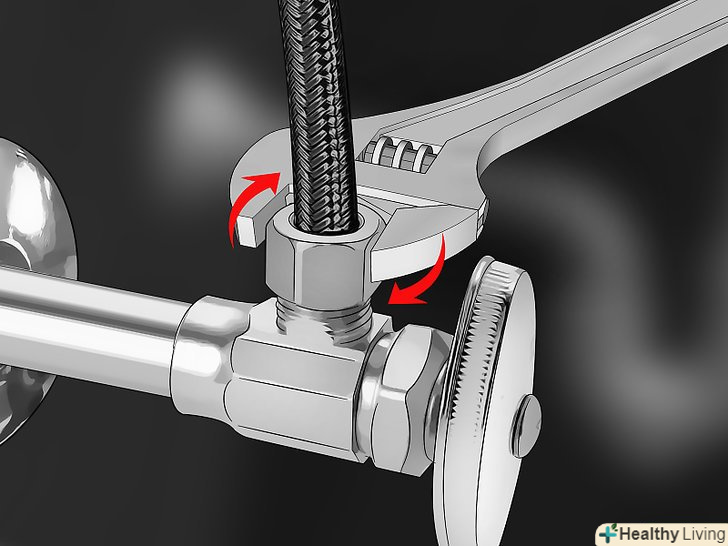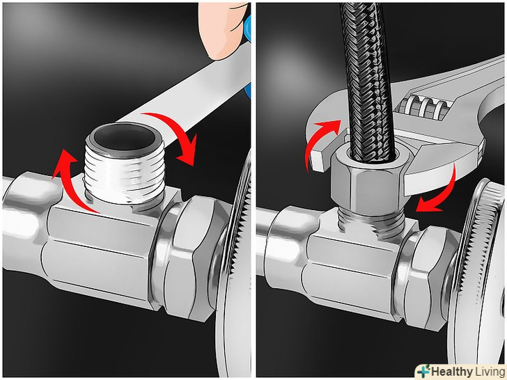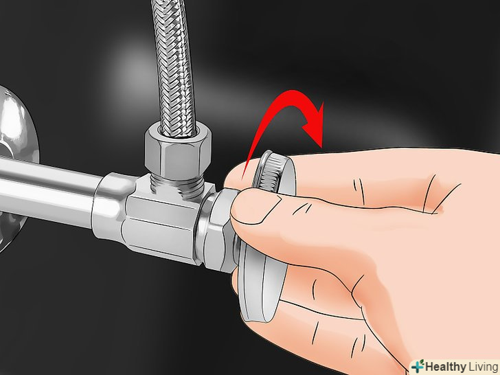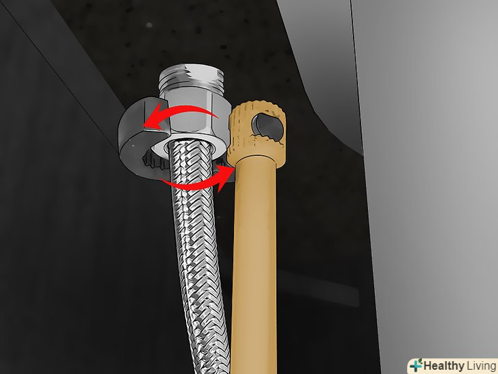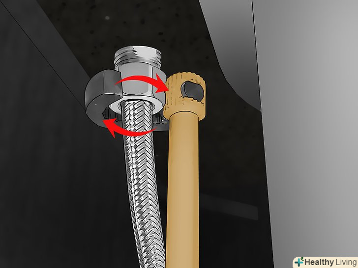 Увімкніть воду і перевірте шланг. щоб включити воду, поверніть запірний вентиль на самому водопроводі вліво (проти годинникової стрілки). Потім включіть воду на змішувачі і переконайтеся у відсутності протікання або інших проблем. [9]- Можливо, після включення вам доведеться почекати кілька секунд, перш ніж вода потече з крана. Також можливі бризки.