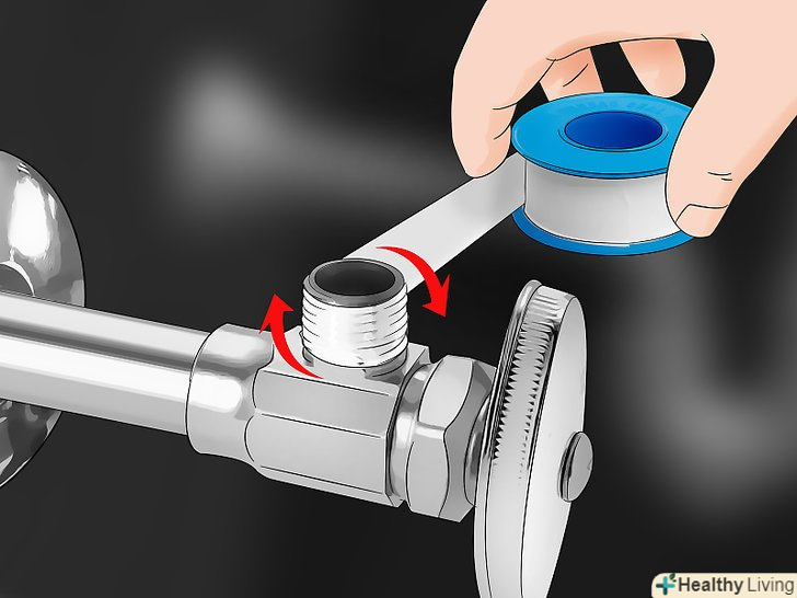 Просушіть і обмотайте різьблення клоччям або фторопластовой стрічкою. за допомогою ганчірки висушіть різьбові кінці труб в місцях підключення підвідного шланга. Після цього обмотайте кінці труб ущільнювальної стрічкою або клоччям на ширину різьблення. [7]- Стрічка або мильна клоччя виступає в якості мастильного матеріалу і ущільнювача. Так вам буде простіше зафіксувати новий шланг і уникнути протікання.