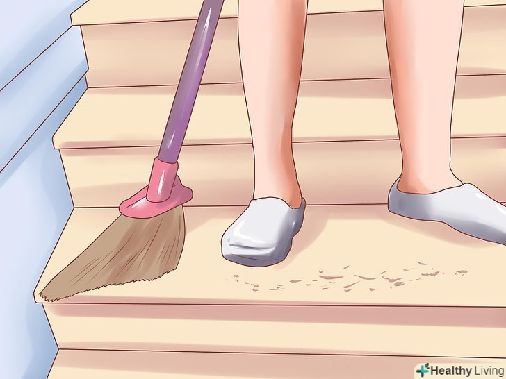 Підмітіть сходи. після цього пропилососьте сходи і підлогу поблизу неї. Нарешті, вимийте сходи і дайте їм просохнути.