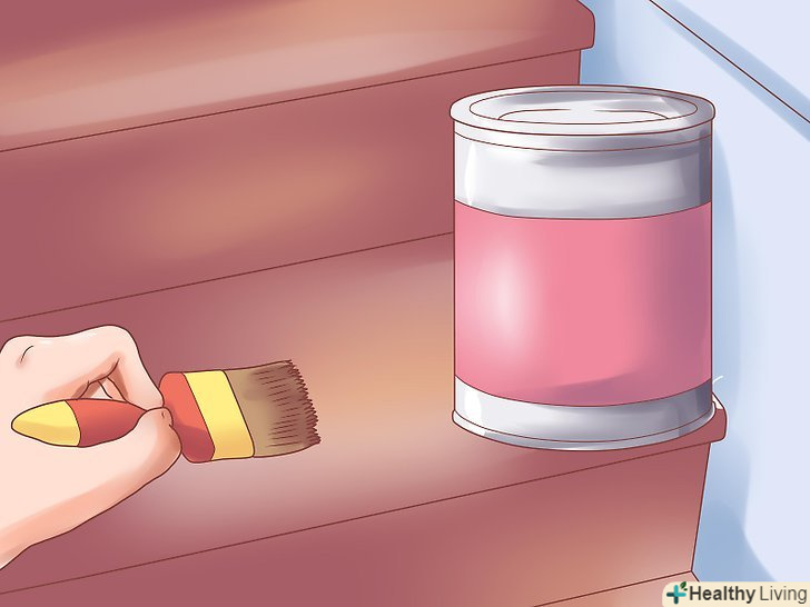 Нанесіть фарбу на ступені за допомогою фарбувальної щітки або дрантя. водну фарбу слід наносити щіткою, а гелеву-дрантям. Перед початком ознайомтеся з інструкцією на банку фарби.- Почніть фарбування з вершини сходів, просуваючись вниз. Необхідно, щоб протягом одного дня або трохи довше після фарбування по сходах ніхто не ходив.