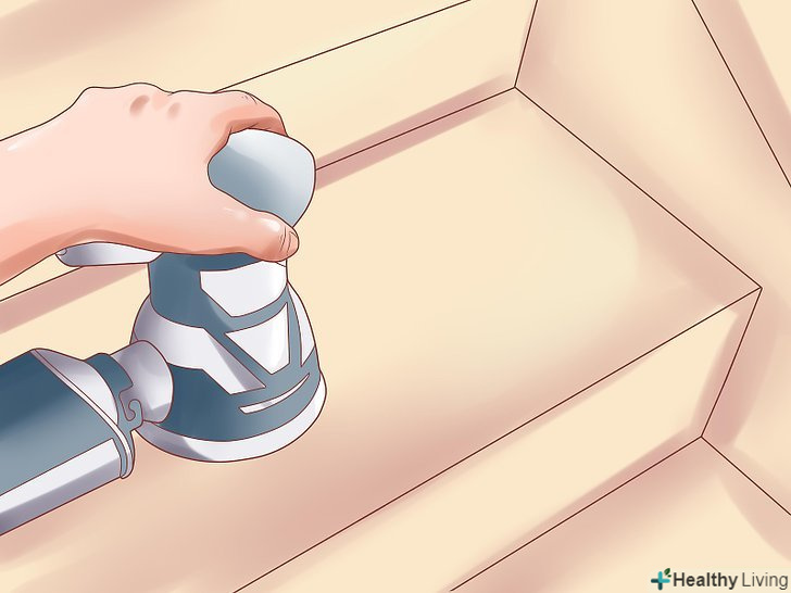 Протріть дерев'яну поверхню ступенів шкіркою із середнім розміром зерна, знявши залишки старої фарби і видаливши задирки і борозенки. на рівних ділянках можна використовувати електричну полірувальну машину, але поблизу стін і кутів доведеться діяти вручну.