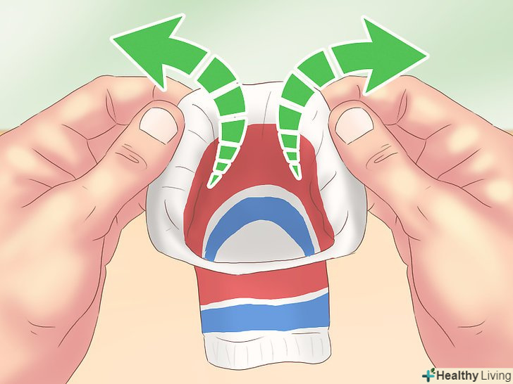 Вставте один носок в інший. Візьміть носок і вставте його в отвір іншого носка. Потягніть перший носок всередину другого. Повторюйте процес, додаючи таку кількість шкарпеток, яке вам необхідно. [9]