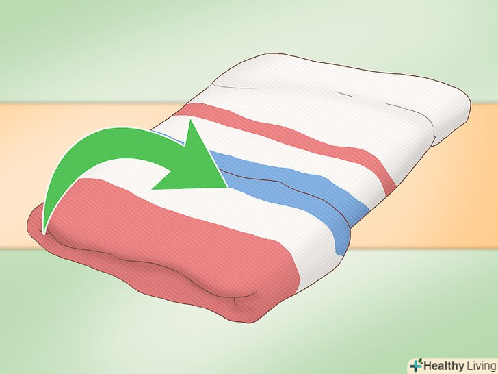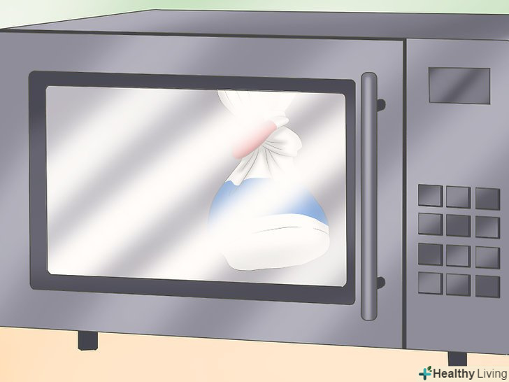 Помістіть носок в мікрохвильову піч. Носок повинен знаходитися в мікрохвильовій печі не більше однієї хвилини за раз і в цілому не більше трьох хвилин. В іншому випадку наповнювач може підгоріти, а носок стати занадто гарячим. Носок повинен бути теплим, але не гарячим. [3]- Поставте чашку води в мікрохвильову піч поруч з носком. Завдяки цьому процес нагрівання сповільниться.