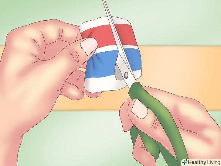 Зробіть отвір для ручки. якщо ви робите чохол для кавової чашки, зробіть отвір для ручки. Використовуючи ножиці, зробіть вертикальний розріз посередині носка. Обробіть його край. [7]- Можна нанести невелику кількість клею на край зробленого отвору, щоб він не обтрепивался.