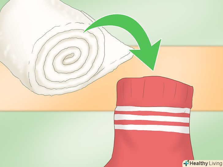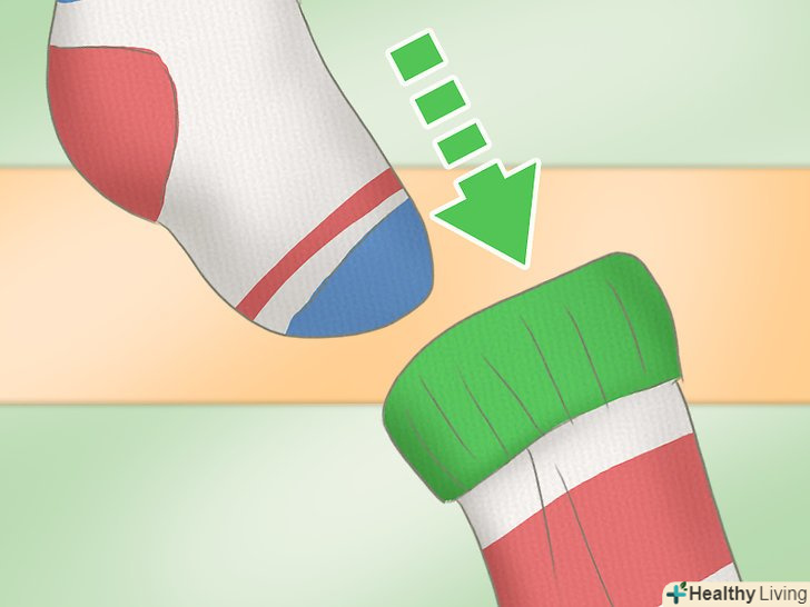 Прикладіть носок до хворої ділянки тіла. використовуйте носок для лікування застуди, ран і для зменшення болю. Помістіть носок на хворобливу м'яз або ділянку тіла і притисніть його до хворого місця.